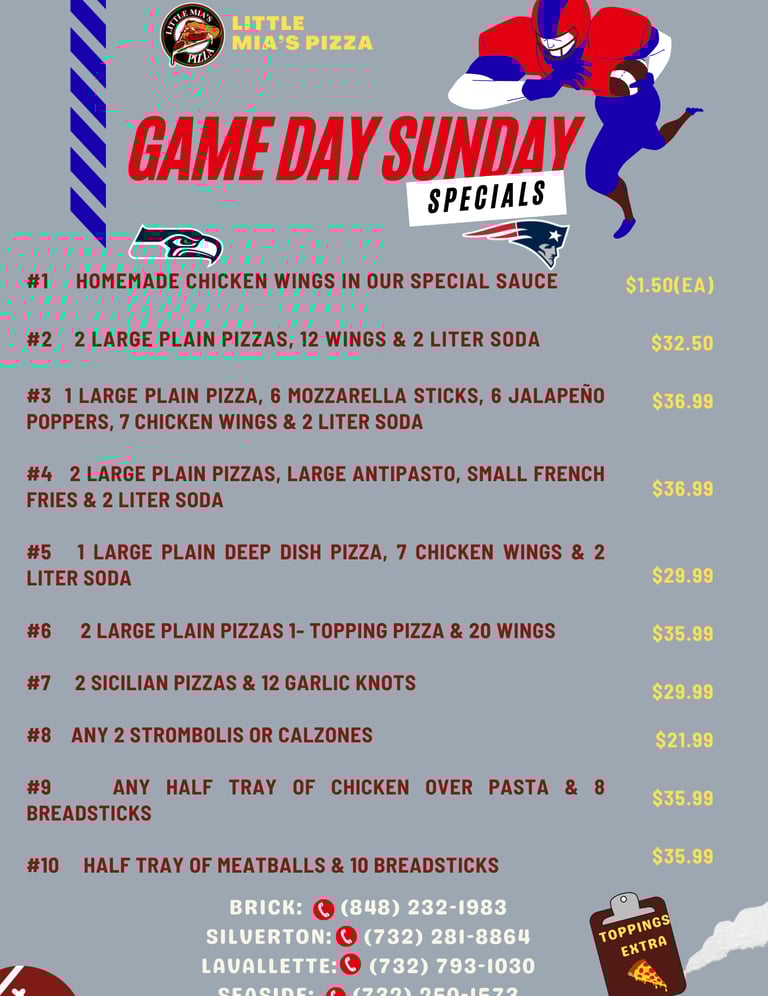 Address: 1506 Grand Central Ave, Lavallette, NJ 08735Phone: (732) 793-1030Hours:Mon - Thu; 11AM - 9:30PM Frid - Sat; 11AM - 10:30PM Sunday 11AM - 9:30PM